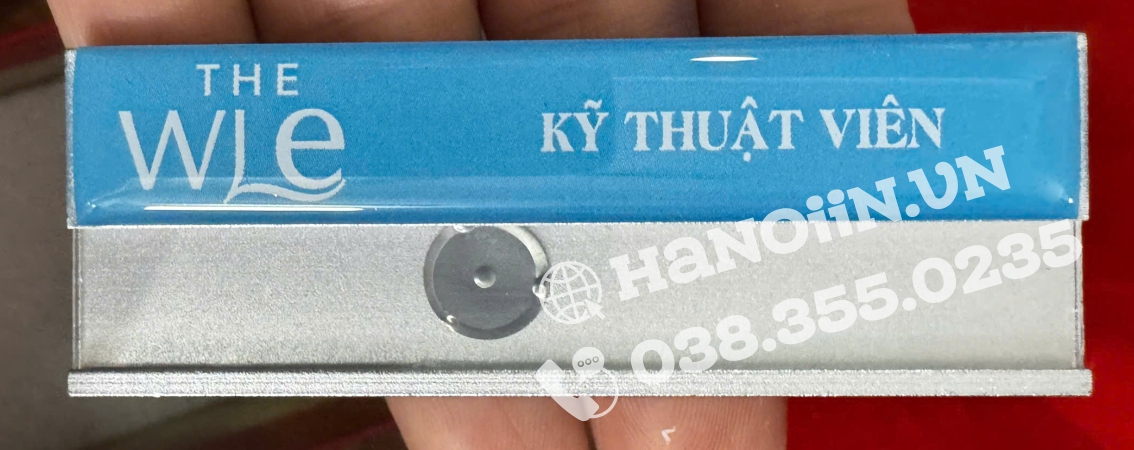 bể vỡ… sử dụng được trong thời gian dài.⇒ Biển Tên Nhân Viên Nhẹ, Nhỏ Gọn, Tiện Dụng:Tất cả các sản phẩm bảng tên đều có trọng lượng rất nhẹ, kích thước nhỏ gọn, thuận tiện cho việc di chuyển,