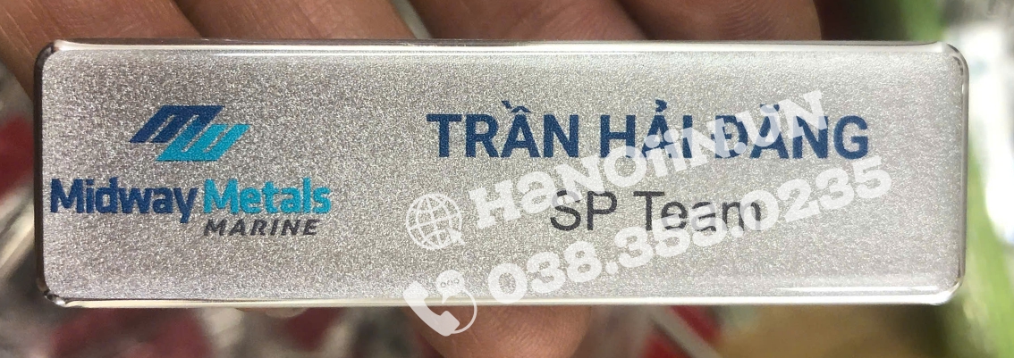 trực tiếp bảng tên cài áo, đảm bảo tiến độ, thời gian cũng như chất lượng và tính thẩm mỹ của sản phẩm. Góp phần tạo nên tính chuyên nghiệp cũng như hình ảnh của khách hàng ra thị trường.