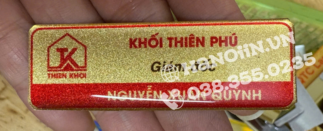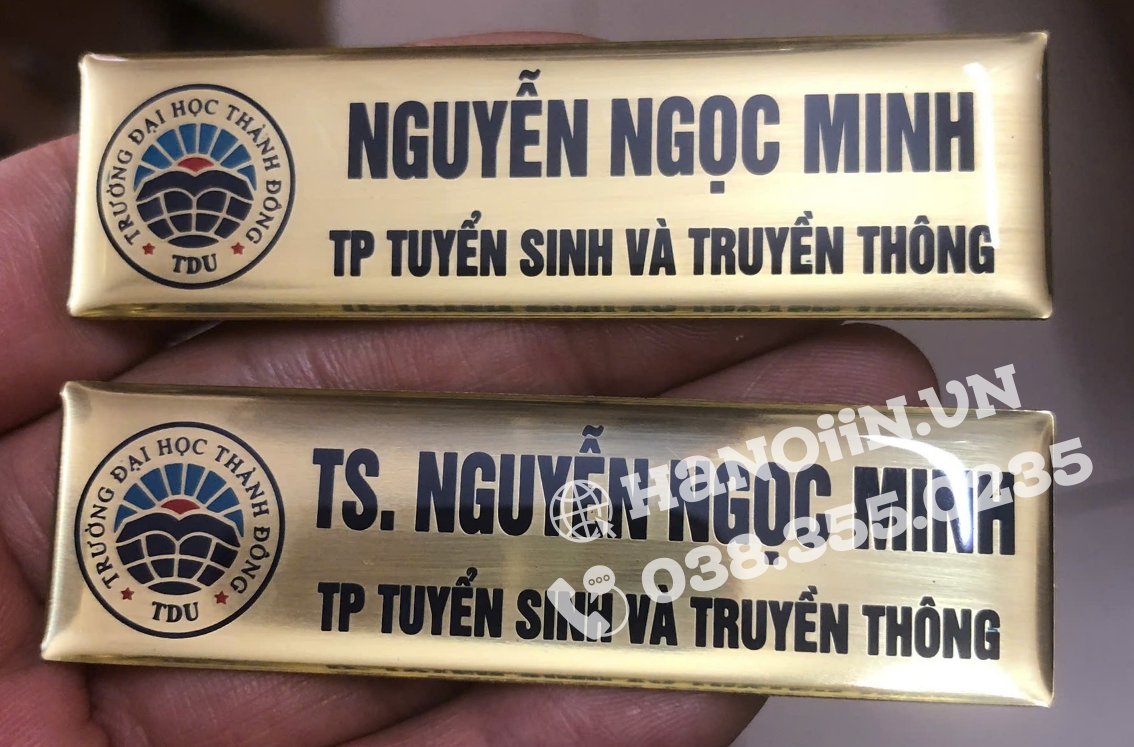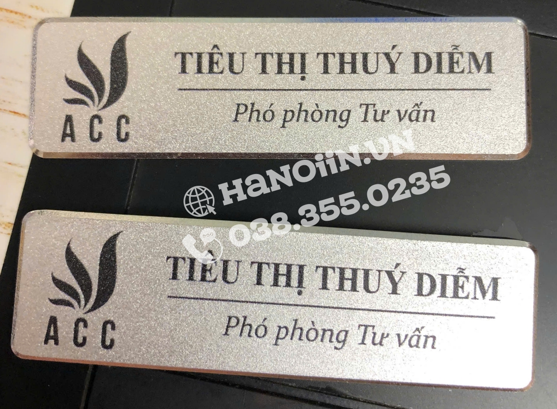 trực tiếp bảng tên cài áo, đảm bảo tiến độ, thời gian cũng như chất lượng và tính thẩm mỹ của sản phẩm. Góp phần tạo nên tính chuyên nghiệp cũng như hình ảnh của khách hàng ra thị trường.